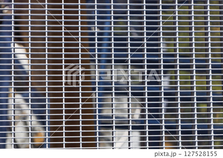 Metal Grating Platform with View Below Showing Industrial Site and Safety Structure