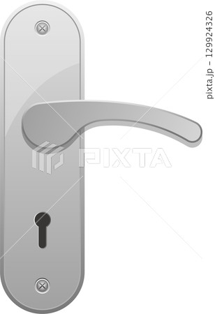 Elegant gray door handle and lock, mounted on a metal plate. Home hardware accessory image.