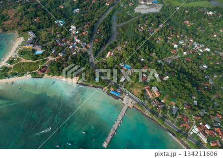 Aerial view of beautiful seascape with fisherman village in sri lanka
