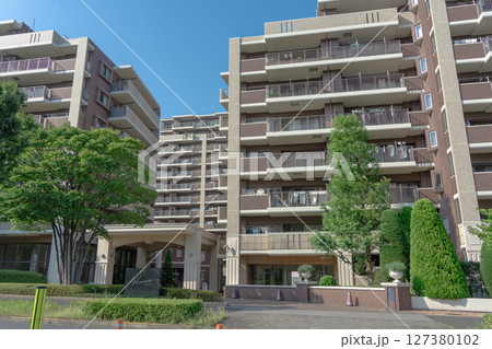 一棟外觀設計精緻的低層公寓大樓;位於安靜住宅區的住宅小區