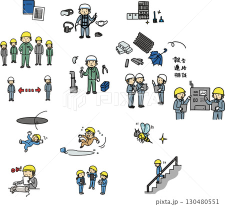 工廠和現場工人的手勢和姿勢插圖 | 不安全行為、不安全條件和工業事故