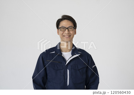 一個三十多歲的男人穿著工作服看著相機的肖像
