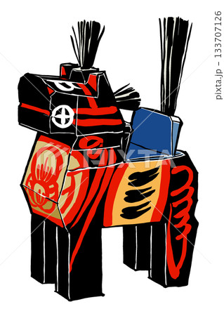 傳統手工藝品:印花風格的紅黑三色三春黑白馬