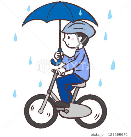駕駛由傘的男學生乘自行車
