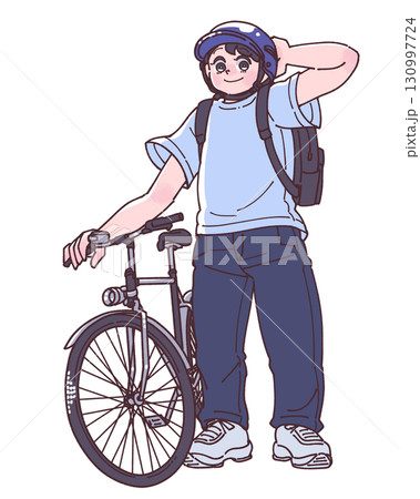 一個人騎著腳踏車,戴著頭盔的插圖