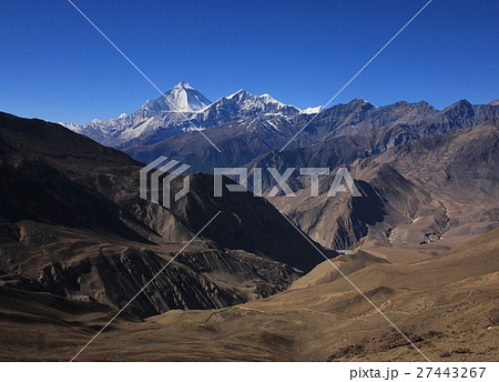 Snow covered Dhaulagiri, high mountain in Nepal.