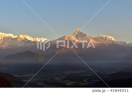 南亞的尼泊爾 從潘山 (Poon Hill) 欣賞黎明時分的安納布爾納山脈 (Annapurna Mountains) 和馬查普恰爾 (Machapuchare),這是一個可以欣賞喜馬拉雅山美景的風景區