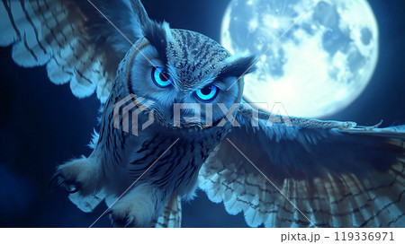 Super harvest blue moon and silhouette birds flying and cloud on night sky