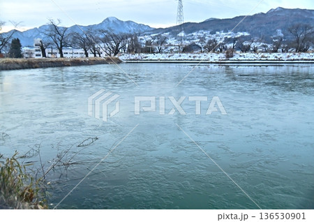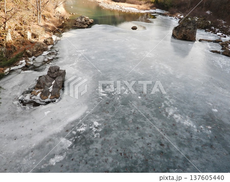 冬季的大瀧河,河水停滯不前,最終結冰。