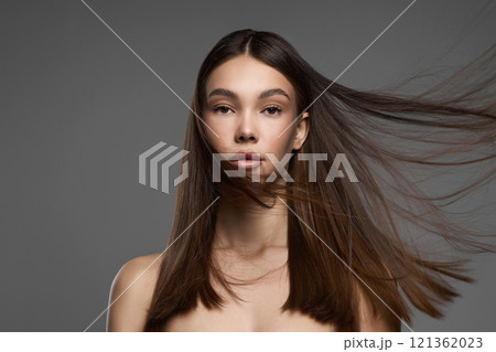 beautiful brown hair young woman. beauty portrait of pretty girl