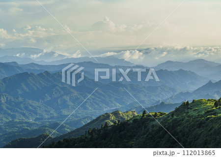 Layers of magnificent mountains and clear clouds background in Taiwan.