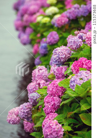 繡球花盛開在水邊