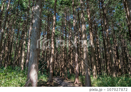 稀疏的樹木無人看管的杉山