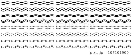 簡單裝飾邊框/線條的插圖集(波浪線、波浪圖案、雙線、多線、波浪)