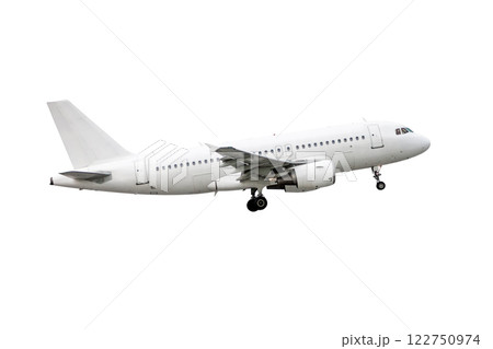 Top view of a commercial jet aircraft isolated on a transparent checkered background