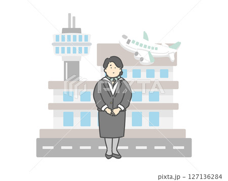 空服員女子機場飛機建築插畫