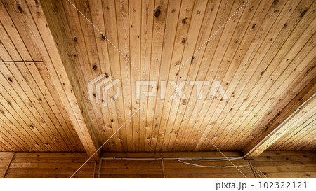 wooden clapboard ceiling in village house