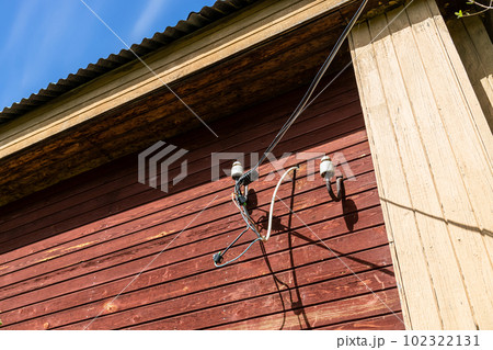 wiring of electrical wires to wooden village house