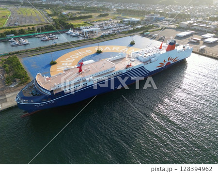 停泊於茨城縣大洗港的「向日葵Pirika」號(無人機拍攝)