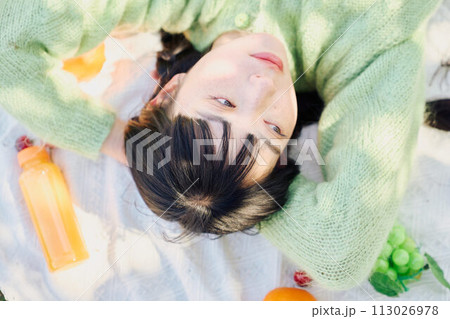 一個女人享受野餐