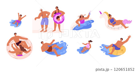 Vector illustration of a set showing characters enjoying their vacation at the water park.