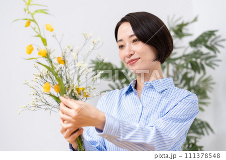 有花的一名婦女