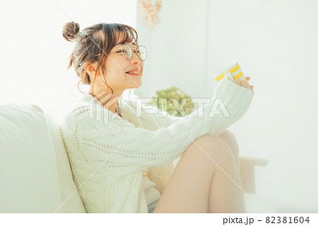 穿著休閒服放鬆的具有女性氣息的年輕女性