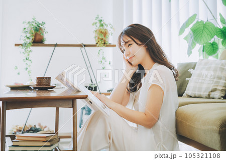 在客廳裡看雜誌的女人