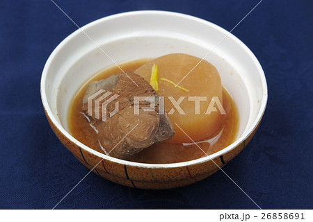 燉根蔬菜和konnyaku