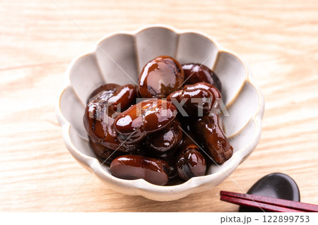 煮大豆和羊栖菜,家常菜,煮熟的羊栖菜