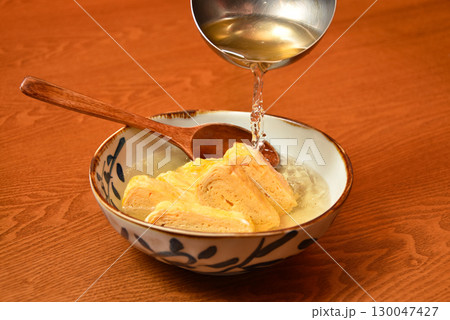 一位高級烹飪味噌湯、白味噌和佐尼早餐[日本家庭的早晨場景]