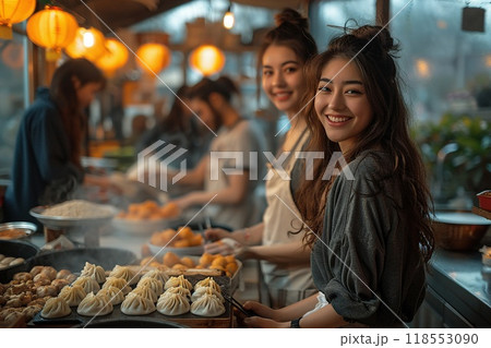Thai steamed pork dumplings or Khao griep pag mor. Made from rice flour wrapped with various types of filling.