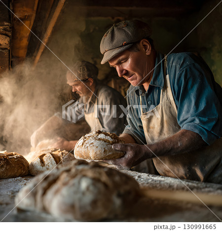 一家古老的麵包店,傳統手工麵包師傅正在揉麵團