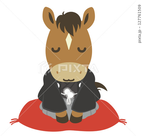 穿著和服的可愛馬角色插畫素材