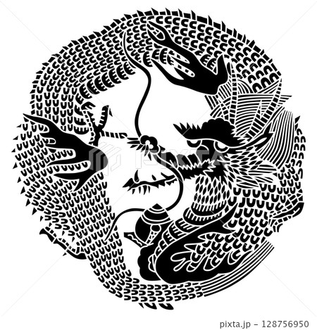 Illustration of the New Year and Christmas A snake wraps around a gingerbread man next to a spruce tree in the form of a contour