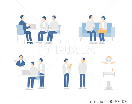 老年夫婦思考生命的終結繼承葬禮墳墓遺書煩惱老年老人老人插圖素材