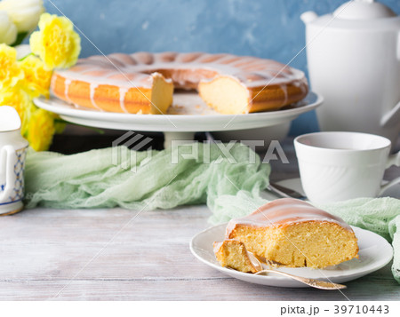 Birthday cake decorated with black candles shaped Happy Birthday inscription, hearts shaped jellies.