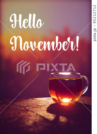 3d renderingn of a cup of warm tea in autumn lights