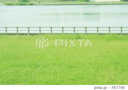 春天從川崎市多摩區登戶的多摩川河床欣賞釣魚者和池塘的景色