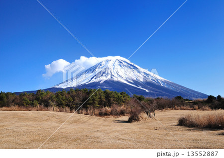 靜岡縣富士宮市朝霧高原的富士山和赤芝