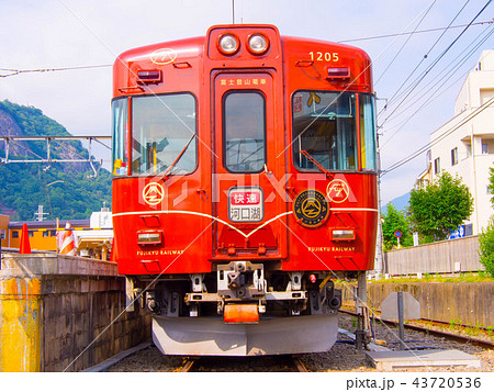 富士急行 1000 和 1200(富士登山電車)停靠在車站