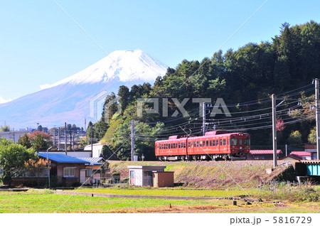 從大月山和菊花山看到的秋天的富士山和富士急線沿線的街道