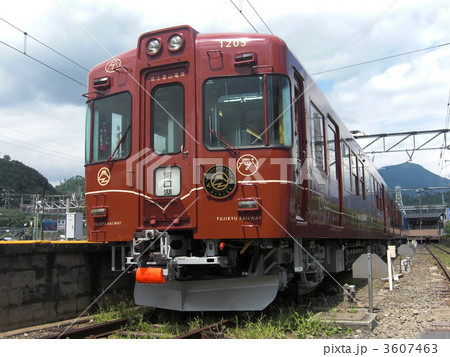 富士急行 1000 和 1200(富士登山電車)停靠在車站