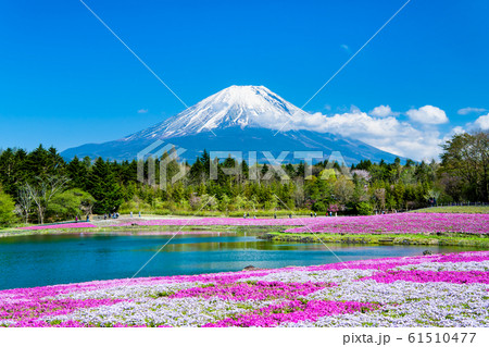 “山梨縣”富士山的美麗風景和草坪櫻花
