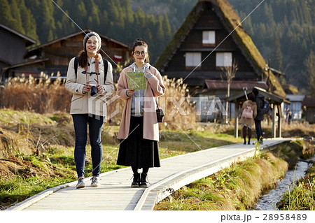 一個女人漫步在白川鄉Goseisaki定居點