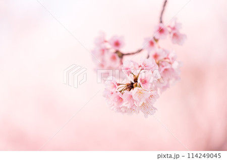 神櫻,冷櫻花,冬天盛開的櫻花,淡粉色的花朵,盛開在寒冷的天空中