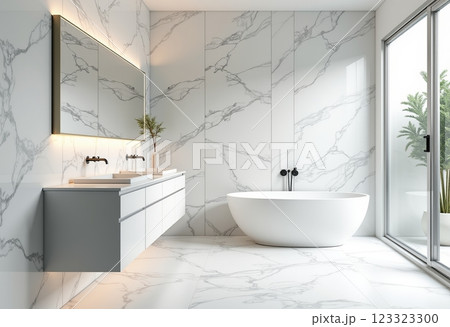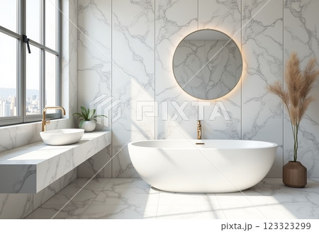 豪華現代大理石白色浴室:高品質照片展示白色大理石和優雅浴室配件的現代設計