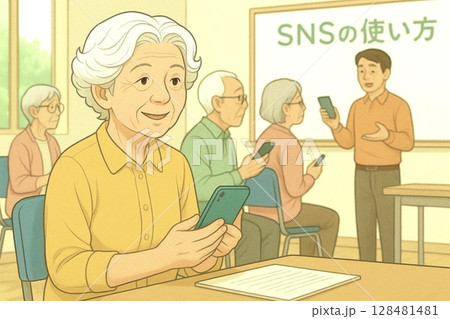 老年人在智慧型手機課堂上學習如何使用社群媒體