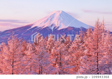 冬天的富士山,日出的霧凇