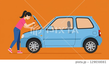 工人在下雨天即將滑倒的場景插圖(平面設計)